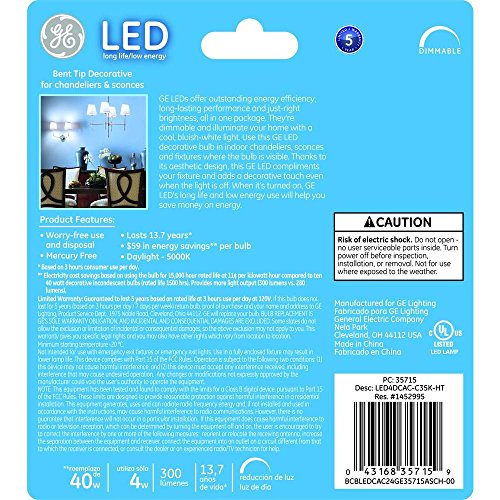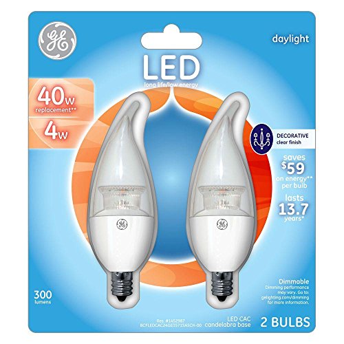 GE 35715 LED 40 Watt Equivalent Daylight Candelabra Base Dimmable Clear Finish LED Lightbulb