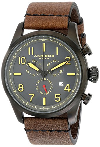 -. Title : Akribos XXIV Men's AK705BKBR Ultimate Stainless Steel Watch with Brown Leather Band