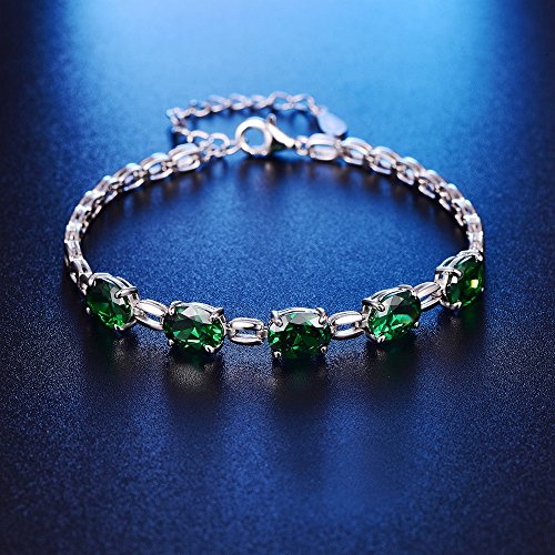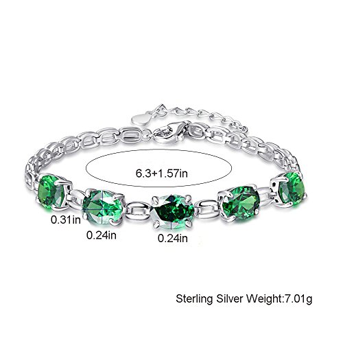 -. Title : BONLAVIE Women’s 925 Sterling Silver Oval Cut Created Garnet Emerald Square Link Chain Bracelet 6.3”