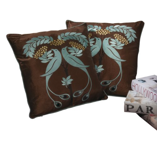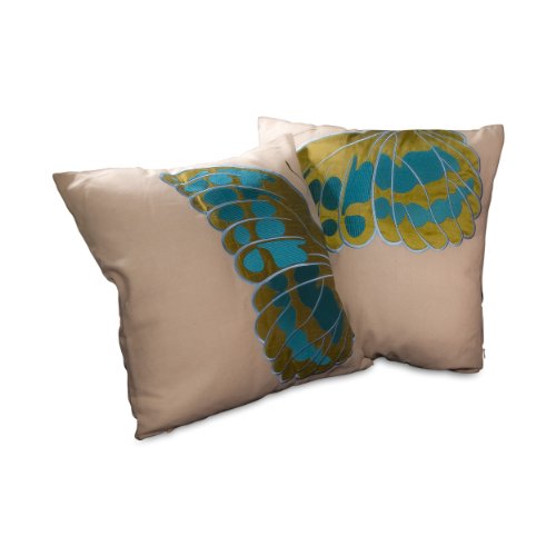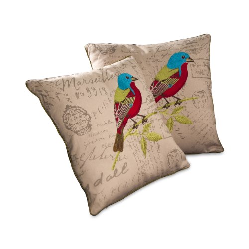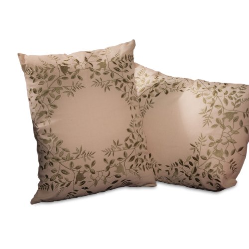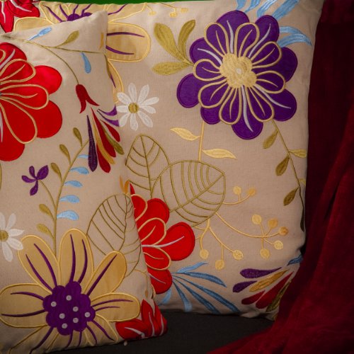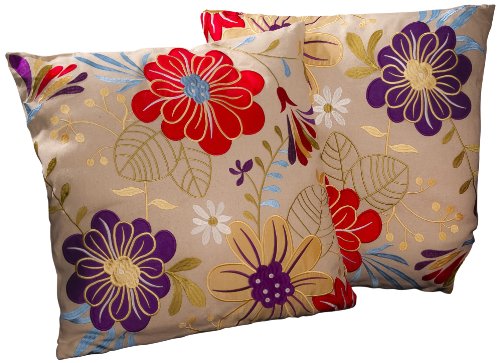 Set of 2 pillows in a Embroidered Flower Patterned and Green, Purple, Red, Beige, Blue colors. Hidden zipper closure Cover with Knife edged and Square shaped Pillow. Cover is made in a Linen Blend and 100-percent Polyester filled. Dimensions are 18-Inch wide x 18-Inch long.Feature
