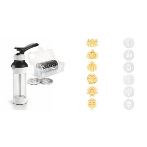 Press includes additional 12 stainless steel cookie disks in different patterns