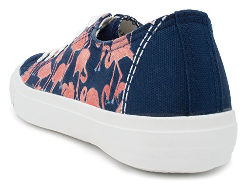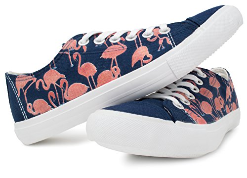 Product DescriptionA pair of cotton canvas sneakers with a cute flamingo scene repeated on the sides0
