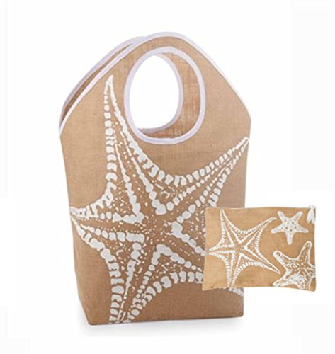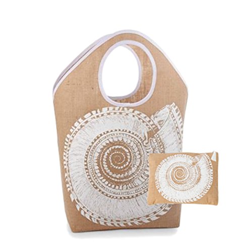 Product Description Make waves with this summer with this Shoreline jute tote bag and case set by Mud Pie. Oversized natural jute tote bag features a white sea life icon, white trim and a laminated wipe-clean interior. Natural jute case has printed white sea life icon and white tassel zipper pull. This tote bag measures 24" high x 21.5" wide x 8" deep: to generously hold all of your essentials. The matching case measures 12" x 9". A perfect accessory to take with you on the boat, to the beach or the spa. 0