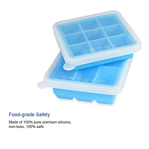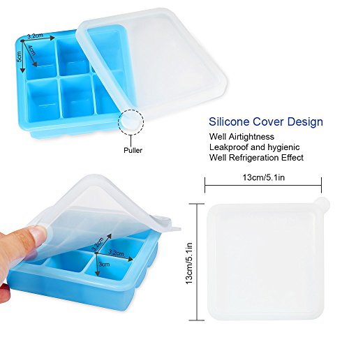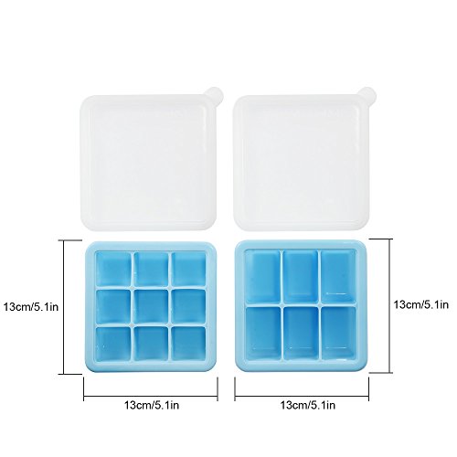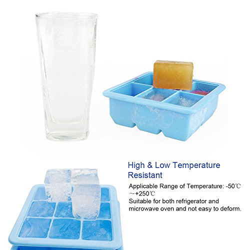 Uarter Multipurpose Silicone Ice Cube Tray Ice Cube Molds Ice Cube Maker with Silicone Cover, Set of 2, 6 Cubes and 9 Cubes, Sky Blue