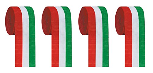 Studio : Beistle Publisher : Beistle Binding : Kitchen Product Description Beistle S22391RWGAZ4 Crepe streamer. The package contains 4 rolls of Red, white and Green Crepe streamer. Each roll measures 2.5 inches long by 30 feet wide. They are made of Crepe paper. Use the Crepe streamer to decorate for Christmas or a Fiesta party! 0
