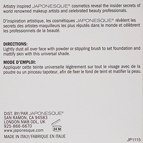 JAPONESQUE Velvet Touch Finishing Powder is a microfine setting powder. Ultra-fine pressed powder formulated with soft silk-like powders and micronized pigments give a luminous soft matte finish. The unique formula blends perfectly without caking or settling into fine lines, while blurring imperfections and gently veiling the skin in silky color. One universal translucent shade is suitable for most skin tones, and blends seamlessly into the skin to set your foundation, giving you a flawless velvet finish.