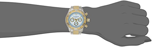 -. Feature : Multifunction features include day, date, and GMT (24 hour) sub dials / Gold-tone, luminescent, hands and hour markers on the Baby Blue, etched, dial / Silver-tone and Gold-tone stainless steel case and bracelet / Swiss Quartz Multifunction movement / Water-resistant to 50 M (165 feet) / Water resistant to 165 feet (50 M): suitable for swimming and showering