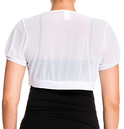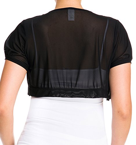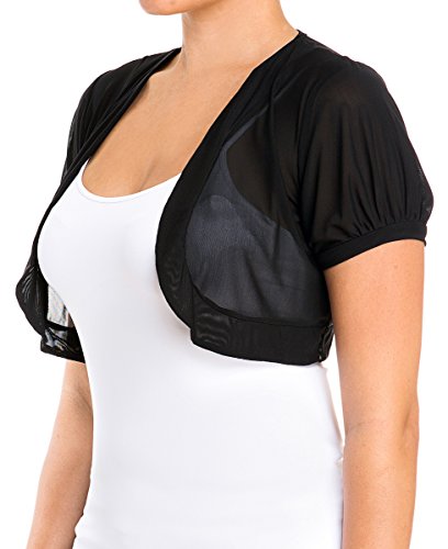 Binding : Apparel Product Description Sheer cropped bolero shrug features short cup sleeves with open front design. Sheer, light and stretchy fabric feels soft to the touch. You can throw this piece over just about anything to give your whole outfit that extra something special.