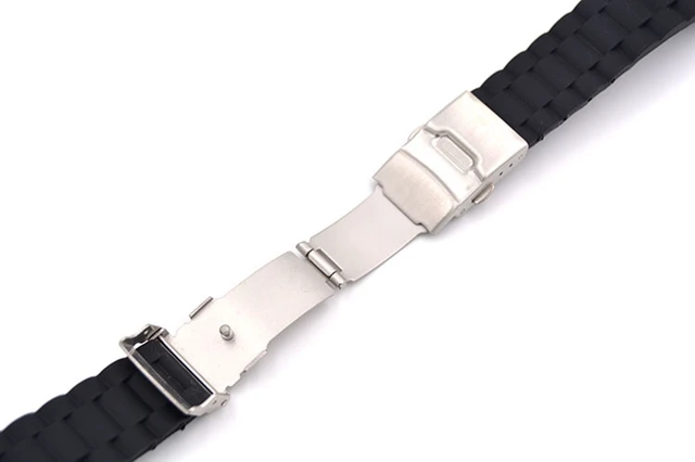 | [해외]에센셜 18 미리메터, 20 미리메터, 22 미리메터, 24 미리메터 새로운 실리콘 고무 시계 스트랩 밴드 배포 버클 방수 블랙 손목 casio |