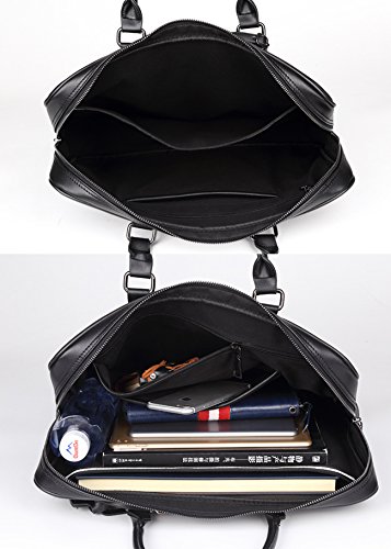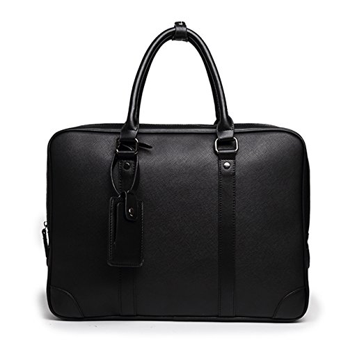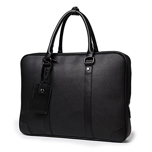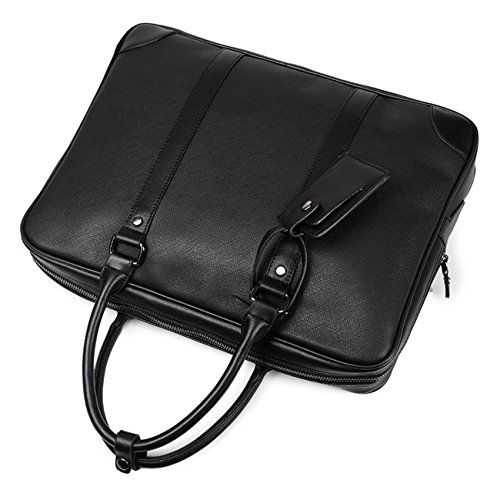 ABOUT BRIEFCASE *Material: Made of high quality synthetic leather. The leather is durable and waterproof. *Measurement: The bag is 40cm long, 7cm Wide and 30cm high. The size is measured according to object, please compare carefully with the model photo and size before buying. *Large Capacity: A bag hold all everyday objects, such as a laptop, tablet, notebook, files, keys, wallet, etc. *Color: Black. *Occasion: Fits all occasion, such as school, work, travel, etc.
