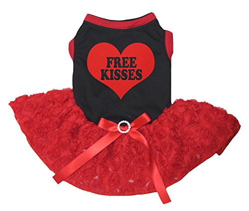 -. Title : Petitebella Puppy Cloth Dog Dress Free Kisses Black Shirt Red Floral Rose Tutu