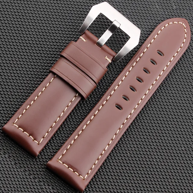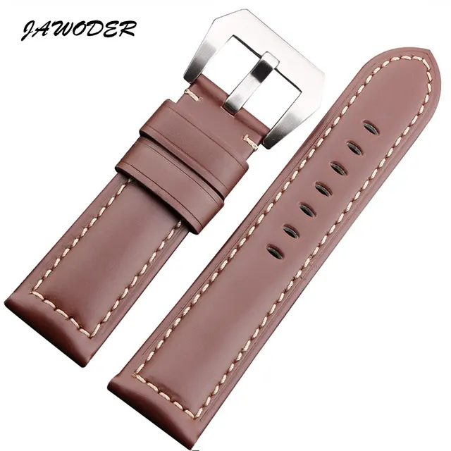 JAWODER 시계 밴드 22 미리메터/24 미리메터/26 미리메터 브라운/블랙 남성 부드러운 정품 가죽 시계 스트랩 스테인레스 스틸 실버 핀 버클 팬