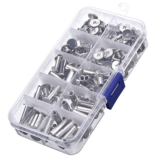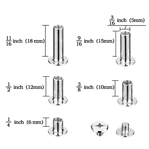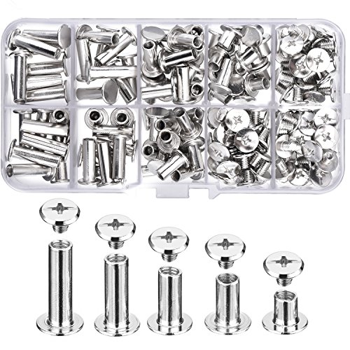 Pangda 80 Set Chicago Binding Screws Assorted Kit 5 Sizes Metal Round Cross Head Stud Screw Posts Nail Rivet Chicago Button for DIY Leather Decoration Bookbinding