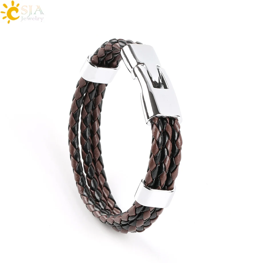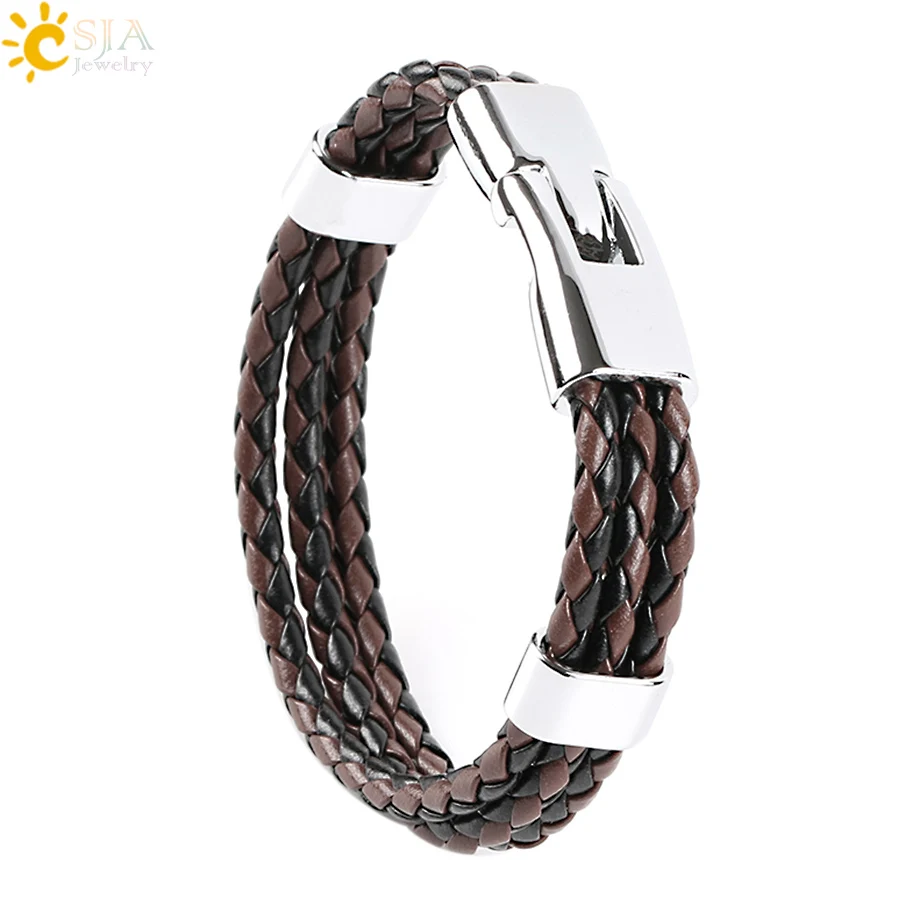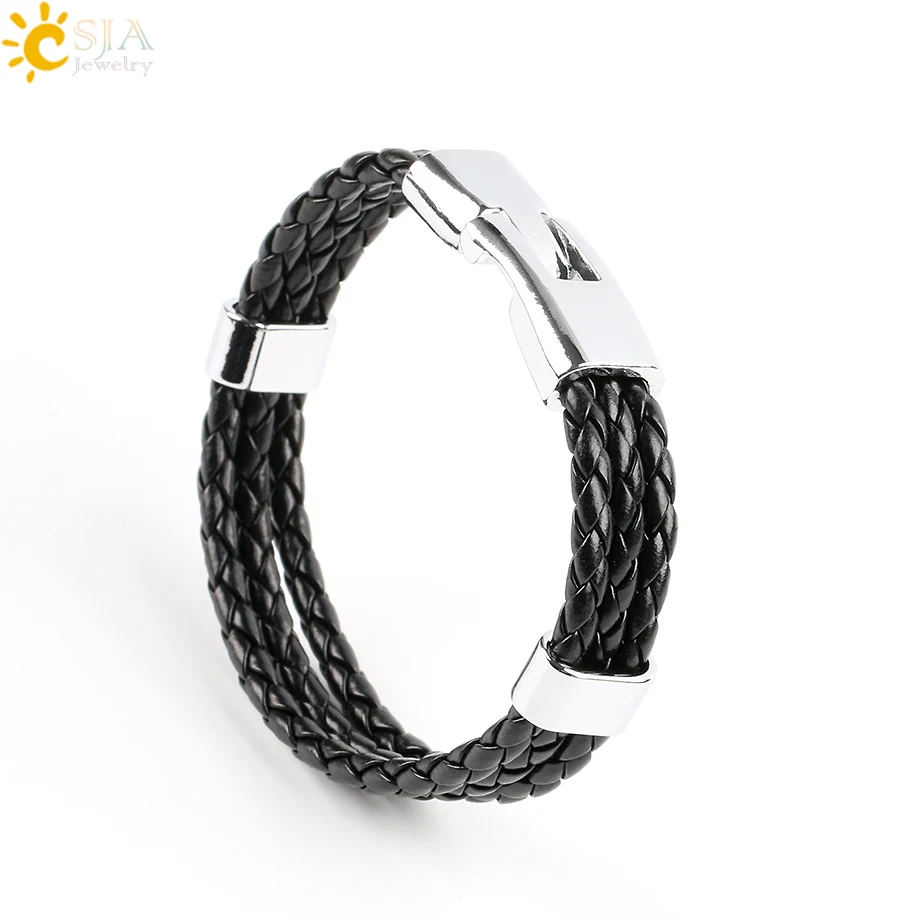 Product Name:Mens PU Leather 3 Layers Hand Wristband Jewelry