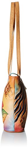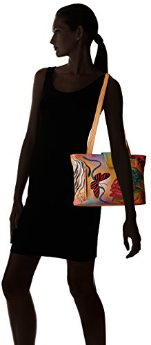 Top zip entry. Loop with magnetic snap button. Front vertical zippered pocket. Inside zippered wall pocket. Cell and multipurpose pocket. Rear zipper pocket.