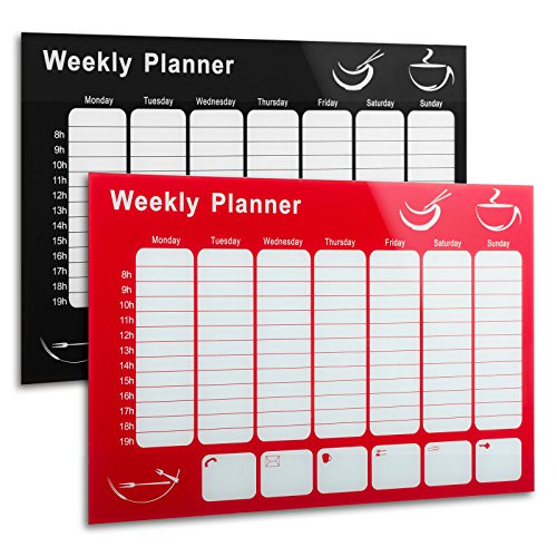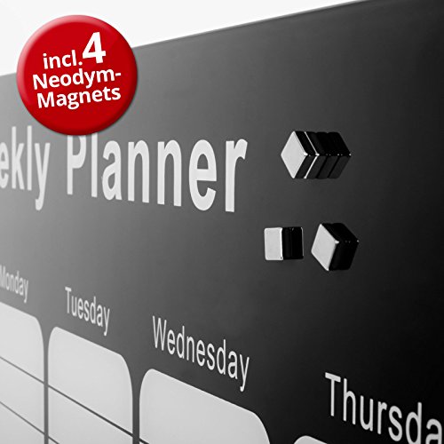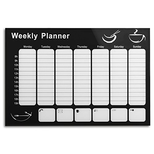 -. Title : Master of Boards® Glass Magnetic Memo Board | Weekly Planner Message Board, Kim - 37" x 26", Black | 2 Colours Available