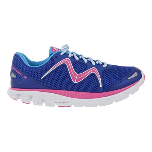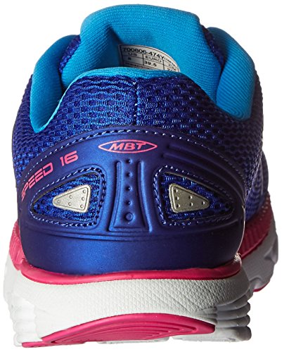 The MBT Speed 16 Lace Up is an athletic women's running shoe that is lightweight and built for speed and support. MBT Speed 16 Lace Up Navy Royal Fuchsia Mesh Women's Shoe Features include: Breathable Air Mesh Upper Strobel Constructions Co-Molded Flex Shank Minimal Midsole/Outsole Removable Anatomically Shaped Foot-Bed Helps keep the foot cool and dry Maximum flexibility and fitting Minimal nylon shank molded into midsole for combination of stability and flexibility High abrasion EVA and high wearing rubber in the critical areas for maximum performance and minimal weight High rebound compound from BASF is antifungal and fights bacteria while forming to your foot. Drylex moisture management fabric top cover wicks moisture away from the foot and helps fight odor causing bacteria Forefoot: 30.5 mm Heel: 31 mm Drop: 0.5 mm Part of the Lightweight collection WE SUGGEST ORDERING 1/2 SIZE LARGER THAN YOU NORMALLY WEAR This MBT style features removable insoles so that you can add your own orthotic insoles. Although to fully benefit from the MBT technology the MBT shoes should be worn without orthotics. If you have any questions you can find the answers in our MBT Shoes Frequently Asked Questions section. Wearing MBT Shoes for the first time? Watch the MBT Shoes Instructional Video The MBT Running Index simplifies the process of finding the right level of MBT shoe for your needs. It ranks MBT Running soles into one of three categories, starting at Lightweight, the least level, and progressing through Performance and ending with our highest level, Cushioning.Feature