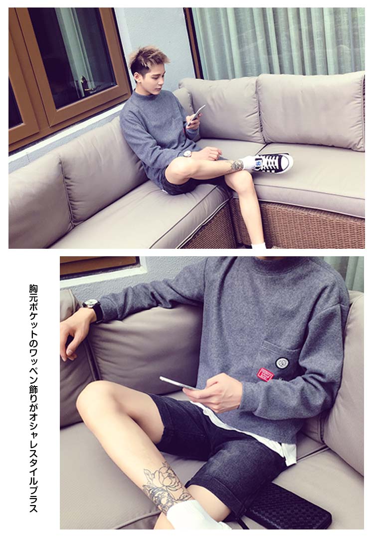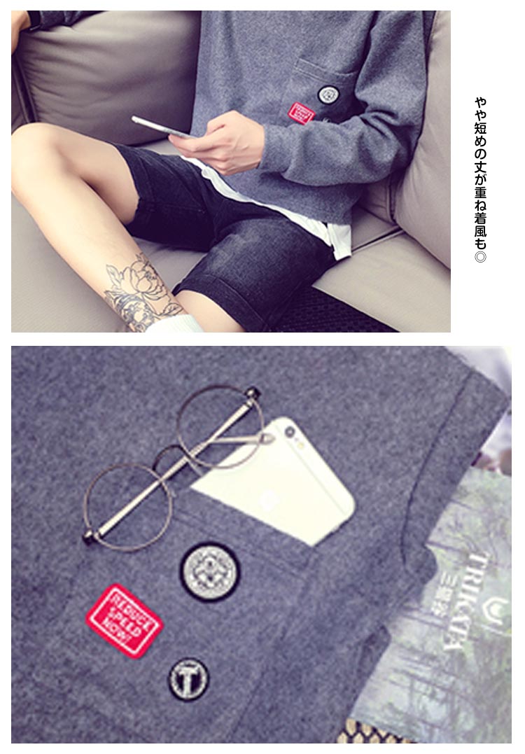 | 柔らかい暖かい肌触りの裏起毛スウェットが新登場しましたシンプルなデザインで、どんなアイテムとも好相性Gジャンやコートを羽織れて、簡単にスタイリッシュコーディネート完成胸元ポケットのワッペン飾りがオシャレスタイルプラス | |