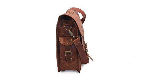 Studio : satchelandfable Publisher : satchelandfable Binding : Electronics Product Description Brown Leather Laptop Satchel Bag with easy access pocket in front ? Ideal for 16-inch or smaller laptop, macbook or any flat screen device. Inner walls of the central compartment are padded to provide extra cushioning to the device ? Can also additionally store files, books, mobile , tablet, laptop charger, etc. ? Very spacious and keeps your stuff organized with 3 Internal compartments ? 2 additional Zippered pockets on the internal walls of the bag ? 1 Adjustable Strap with Max Length 55 Inches ? Dimensions: 16"(W) x 12"(H) x 5"(D) 0