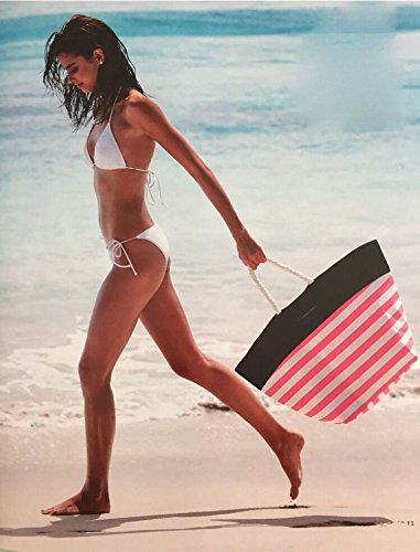 -. Feature : Victoria's Secret SWIM Tote 2016 Beach Bag Pink White Stripes Black Rope Handles
