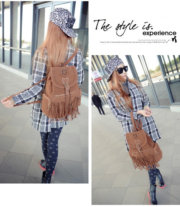 前面にフリンジが施されていてインパクトのあるデザイン♪