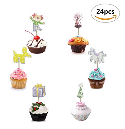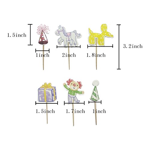 Maydolbone 24pcs Clown Circus Themed Party Decorative Cupcake Toppers,Food Picks Baby Shower Decor And Cupcake Party Picks