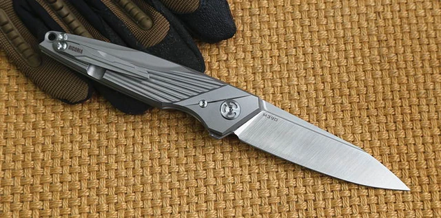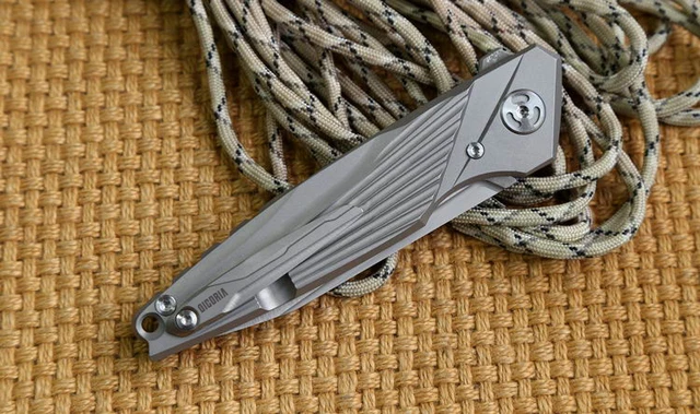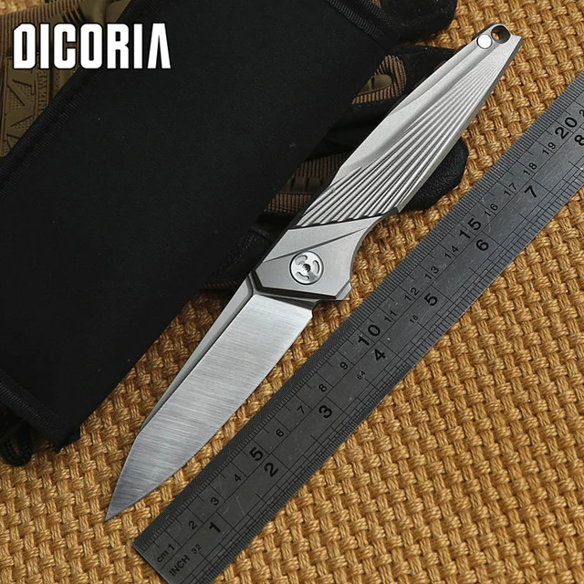 | [해외] Dicoria 야외 광선 플리퍼 접는 칼 titanium 핸들 m390 블레이드 kvt 볼 베어링 전술 캠프 생존 나이프 edc 도구 |