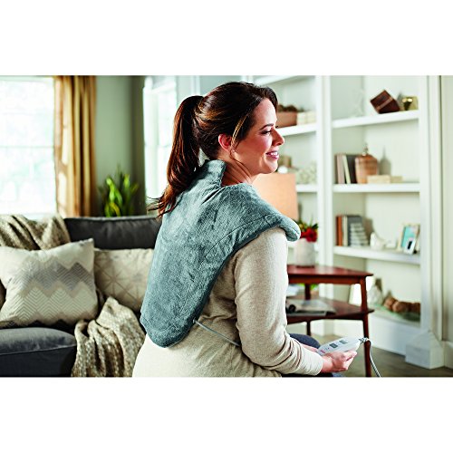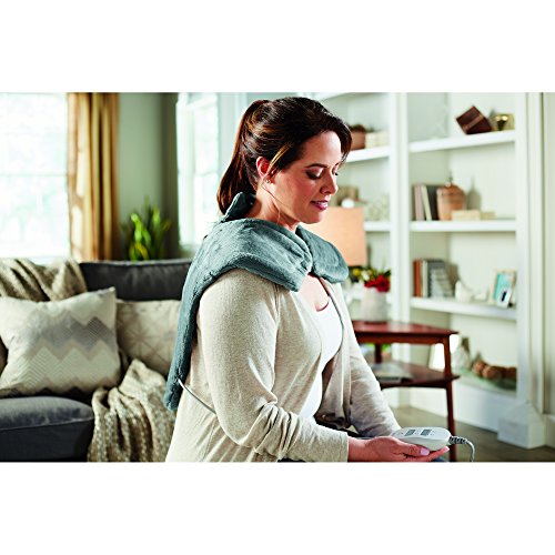 The XL Massaging Renue Heat Therapy Wrap provides relaxing, massaging therapeutic heat directly to the area of stress and strain for maximum relief, soothing away neck, back and shoulder tension. Area-specific heating pad designed with a unique shape and upper flap to allow for massaging treatment of the neck, back and shoulder areas. Slightly weighted edges provide a custom fit that securely increases contact with the treatment area. XL size to fully cover and provide massaging heat relief to the neck, shoulders and most of the back.Feature