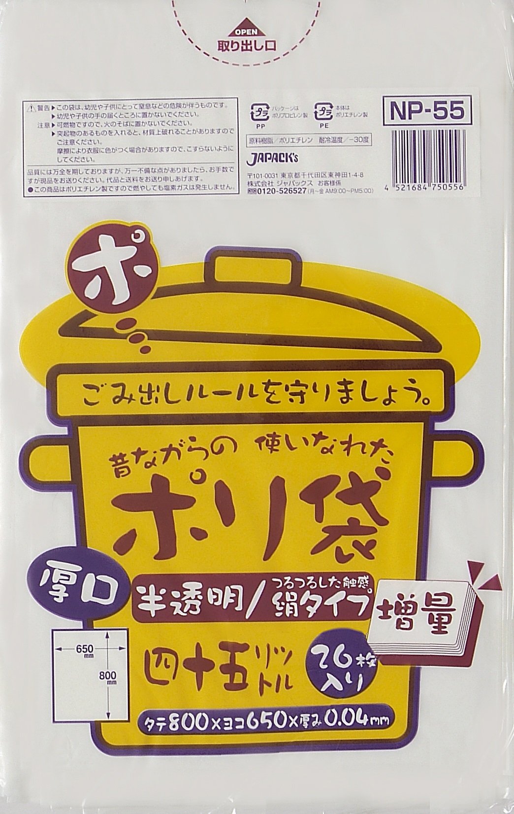 Japax Old-fashioned polyethylene bag translucent thickened increment 45L is a polyethylene bag of 45L size.