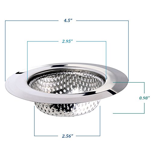 ✔ MICRO-PERFORATION: very small holes. Efficient anti-clogging shield lets liquid flow seamlessly into the drain while it blocks food particles.4.45 inch overal dia fits most kitchen sink!