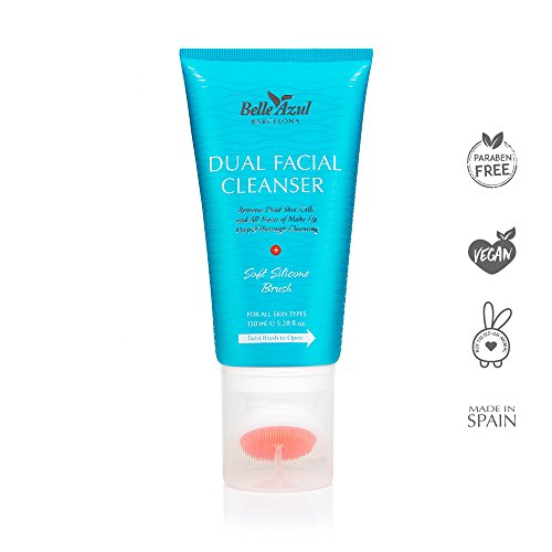Belle Azul Dual Facial Cleanser with Exfoliating Cleansing Brush - Oil-Free Face Wash Gel with Cucumber Extracts 150 ml / 5.28 fl.oz
