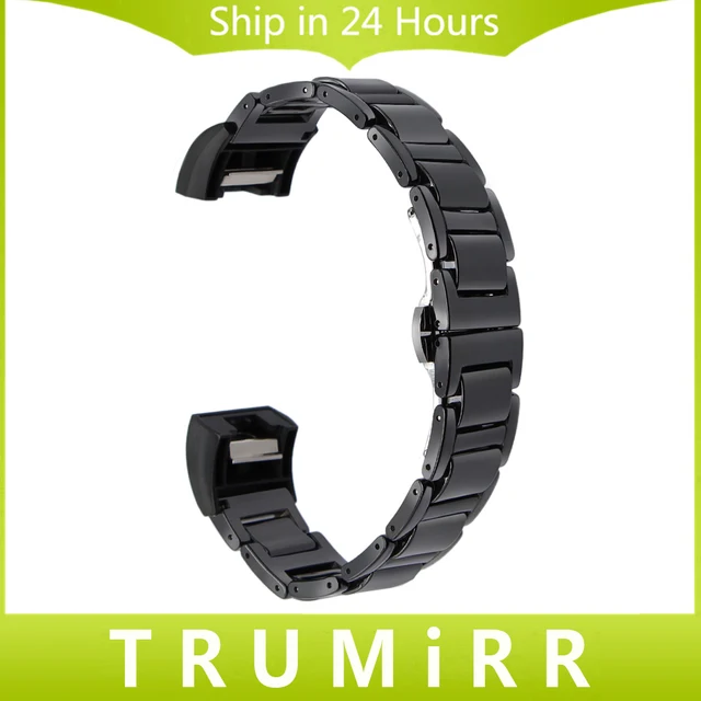 | [해외] 전체 세라믹 손목 시계 + 링크 리무버 핏 비트 충전 2 팔찌 smart watch 밴드 butterfly 버클 손목 팔찌 블랙 화이트 |
