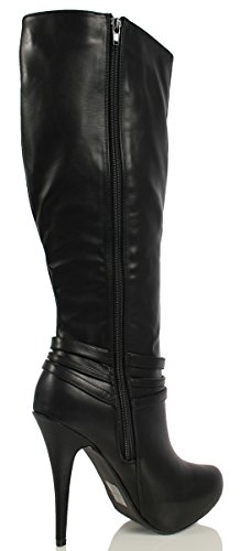 Product Description Walk with confidence in these chic faux leather strappy high heel boots features 1 1/4" platform, strappy adjustable buckle at ankle, silver zipper accent (nonfunctional), inner side for easy on and off, slightly padded insole, and textures sole. Heel approx 5 1/4" 0