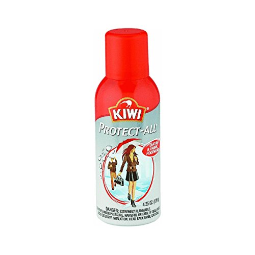 -. Brand : Kiwi -. Feature : 4.25 oz (aerosol) / Leather and Fabric Footwear / Provides water and stain protection / Repels water and stains from hats, jackets and raincoats / For use on all dry clean only materials -. Label : Kiwi -. Manufacturer : Kiwi -. ProductGroup : Kitchen -. ProductTypeName : KITCHEN -. Publisher : Kiwi -. Size : 4.25 oz -. Studio : Kiwi -. Title : Kiwi Protect-All, 4.25 oz