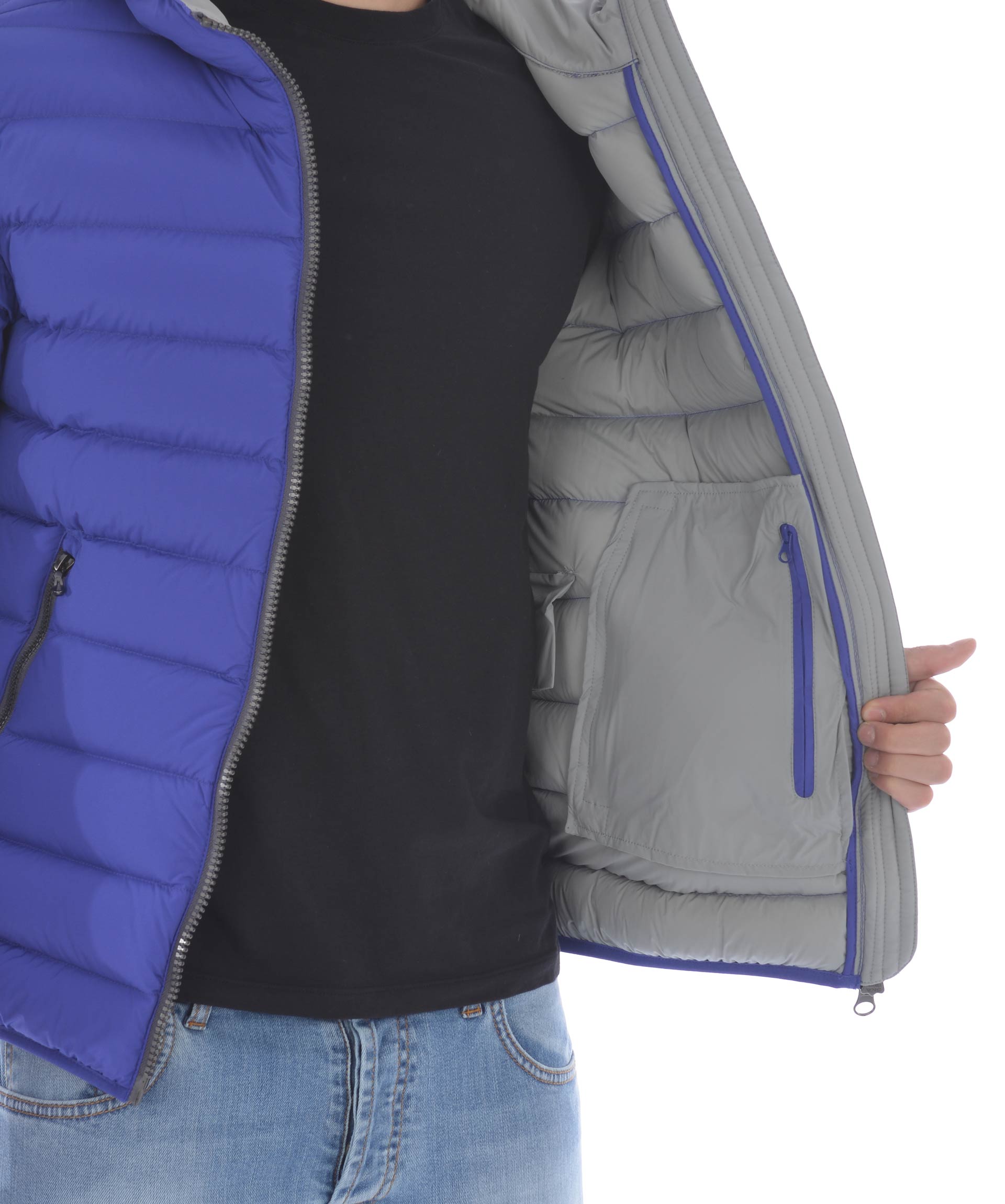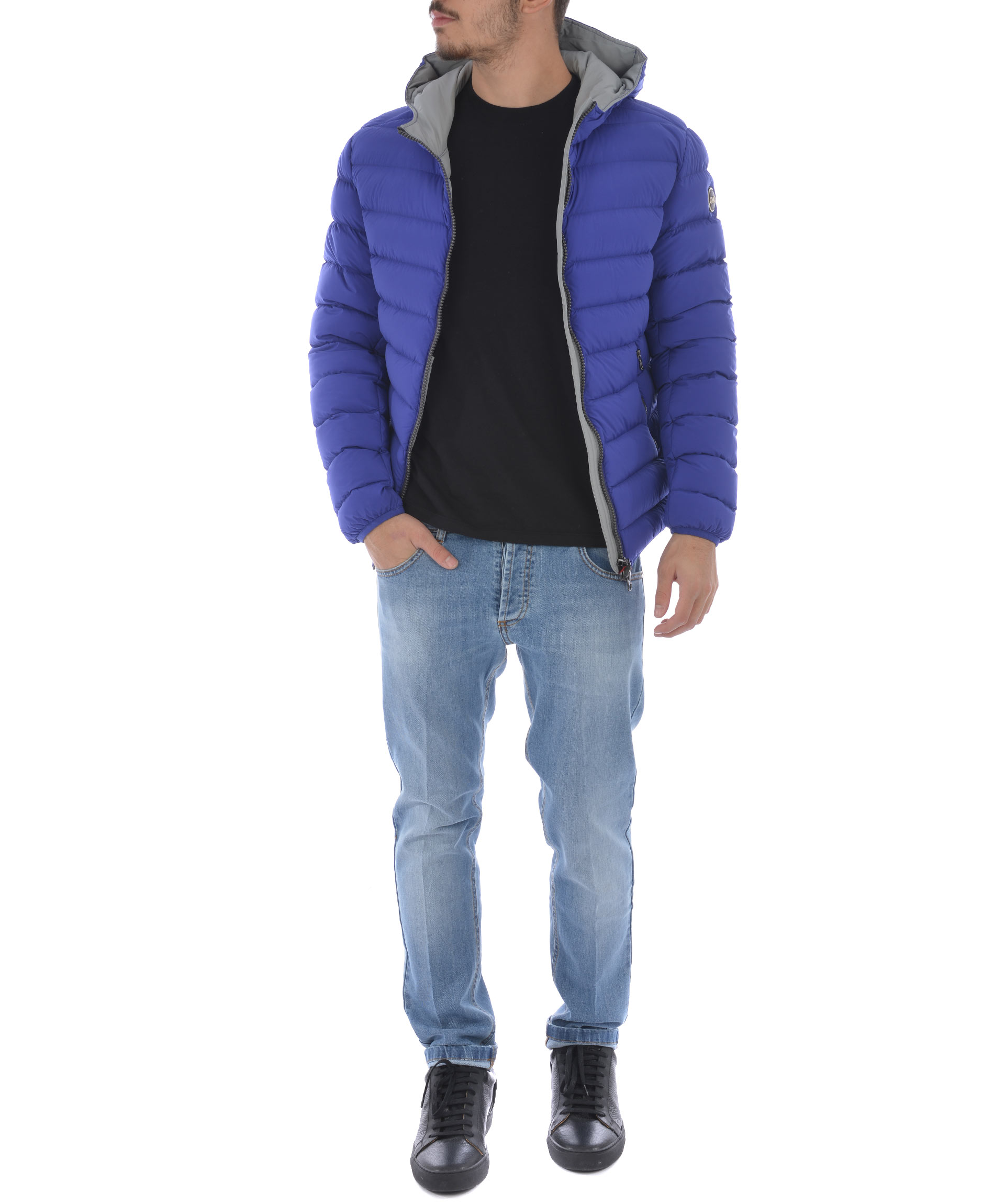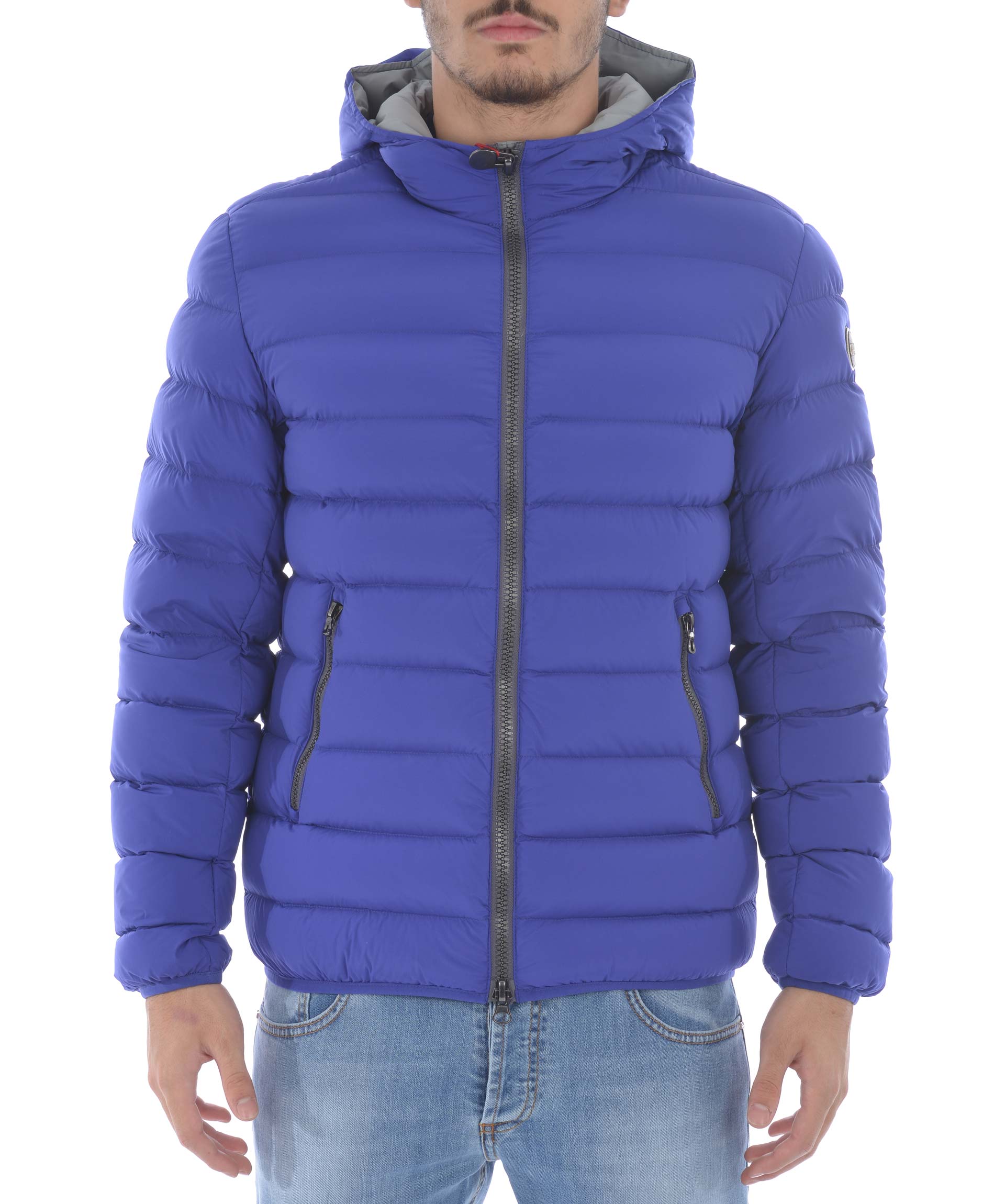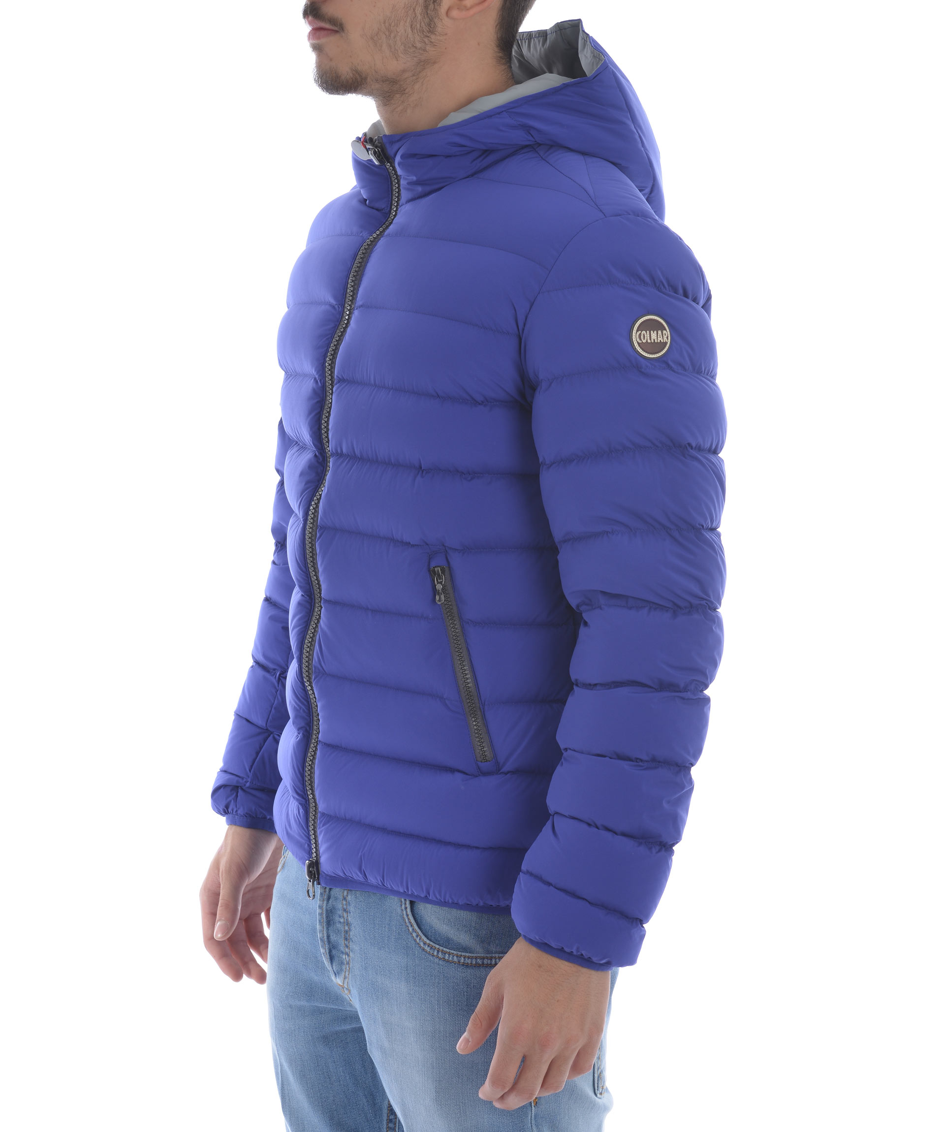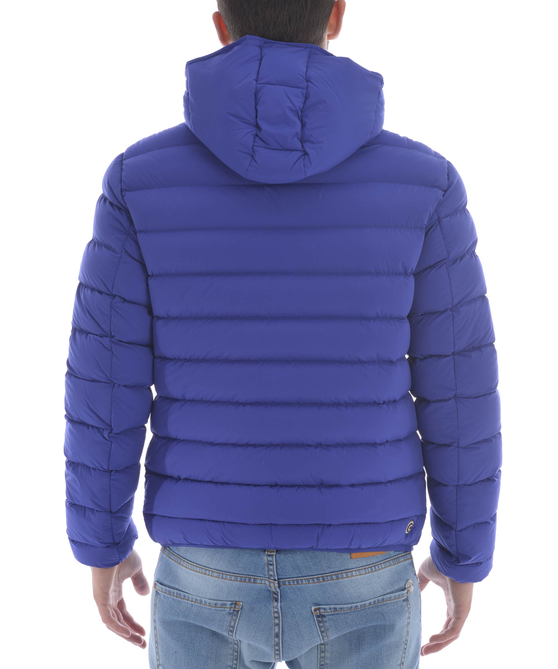 Piumino Colmar Originals in nylon trapuntato elasticizzato opaco Blu cobalto. Imbottito in piuma d'oca. Cappuccio fisso. Chiusura con zip doppio cursore. Tasche frontali con zip. Tasca interna con zip. Traversino elasticizzato ai polisi e sul fondo. Fodera a contrasto. Patch logo applicato sul retro e sulla manica sinistra.