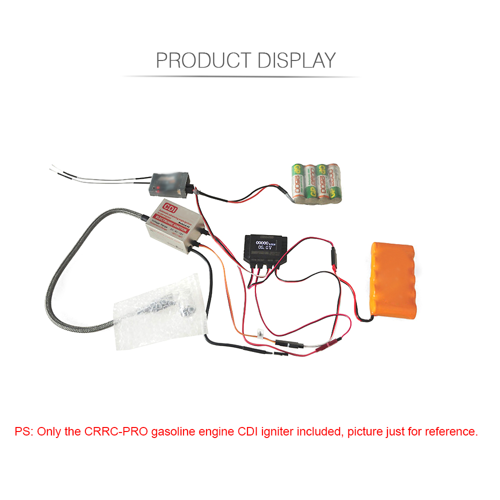 This product is very important and convenient, which is combined gasoline engine CDI igniter with remote flameout switch and RPM tachometer these two tools. The power supply system and control system are completely isolated in this product. So you don't need to worry about the noise jamming problems. Besides, it is easy to install and durable in use. RC in can connect RC receiver and control the CDI flameout with remote controller. Get the revolving speed signal from Y wiring when using the igniter on engine.