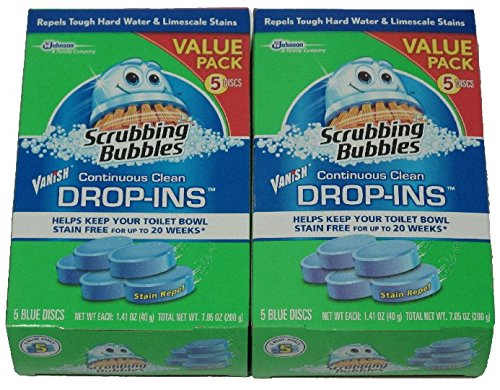 -. Title : Scrubbing Bubbles Vanish Continuous Clean Toilet Bowl Drop-Ins, Box of 5 Blue Discs (2-Pack, 10 Discs Total)