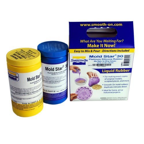 Studio : Smooth-On, Inc. Publisher : Smooth-On, Inc. Product Description Mold Star® rubbers are easy to use platinum silicones which are mixed 1A:1B by volume (no weighing scale necessary). Mold Star® silicones feature relatively low viscosities and vacuum degassing is not required for most applications. Mold Star® silicones cure to soft, strong rubbers which are tear resistant and exhibit very low long term shrinkage. Molds made with Mold Star® will last a long time in your mold library and are good for casting wax, gypsum, resins, concrete and other materials. Cured Mold Star® rubber is heat resistant up to 450°F (232°C) and is suitable for casting low-temperature melt metal alloys. Note: THI-VEX® is NOT compatible with Mold Star® rubbers. MOLD STAR 30: MIX RATIO: 1:1 by volume; POT LIFE: 45 mins; DEMOLD TIME: 6 hrs; SHORE A: 30; COLOR: Green Read the MSDS before using. Consult the Technical Bulletin for further information or visit us at www.smooth-on.com 0