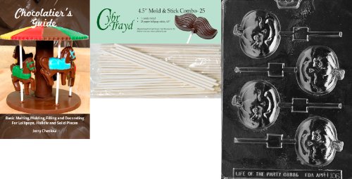 Cybrtrayd 'Winking Pumpkin Lolly' Halloween Chocolate Candy Mold with 25 4.5-Inch Lollipop Sticks and Chocolatier's Guide