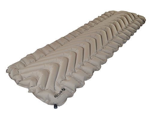 Affordable lightweight camping pad with V-chamber design to limit air movement and heat loss for better support and comfort