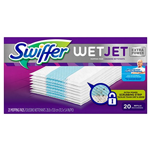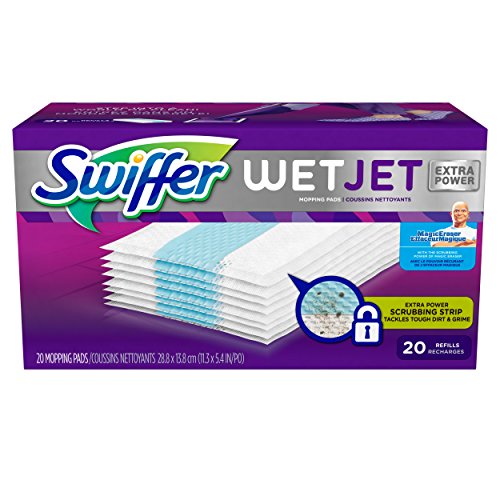 Swiffer WetJet Extra Power with Mr. Clean MagicEraser Hardwood Floor Cleaner, Spray Mop Pad Refill, 20 Count