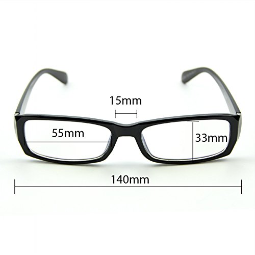 Lens width: 55mm, Lens height: 33mm, Bridge: 15mm, Frame total: 140mm.No degree, suitable for teenagers, students, drivers, gamers, middle-aged and elderly.