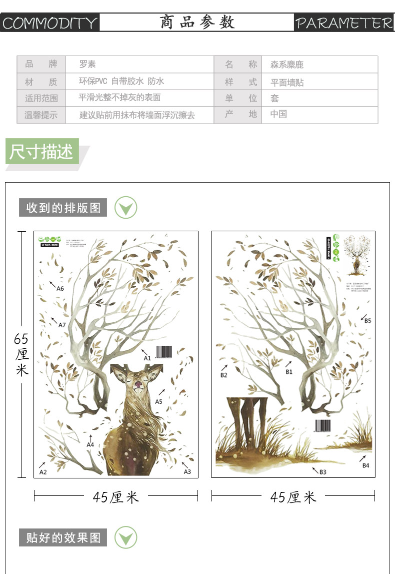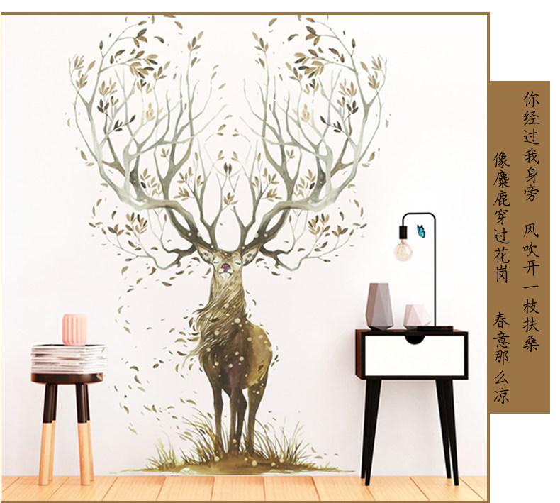 北欧麋鹿创意墙贴画客厅走廊玄关背景墙壁装饰品贴纸个性自粘墙纸