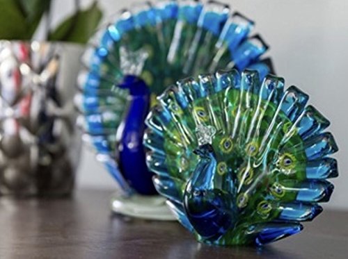 Dynasty Gallery Hand Blown Glass Peacock Figure Statue 5.25"