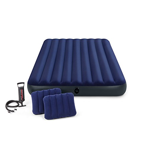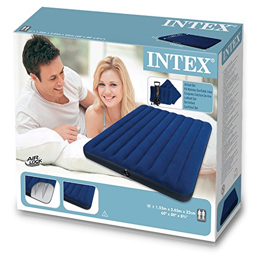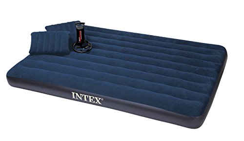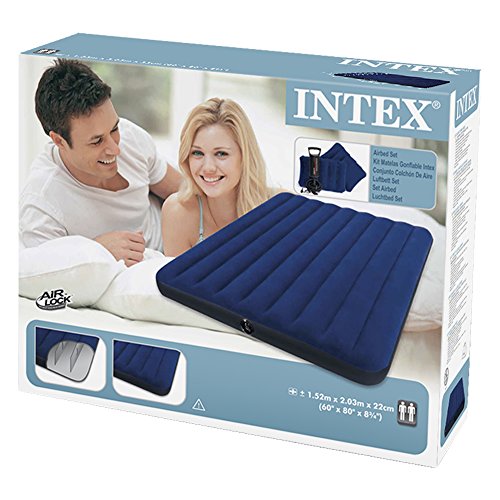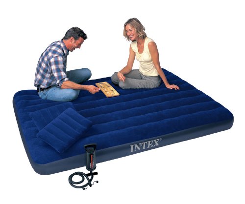 Studio : Intex Publisher : Intex Binding : Sports Product Description With plush flocking on the top, the Classic Downy airbed gives a more luxurious sleeping surface and helps keep bedding from slipping. Flocking cleans easily and is waterproof for camping use. Wave beam construction for a uniform sleeping surface. Quality tested 20.8 gauge waterproof flocked top with 14 gauge vinyl beams and 15 gauge vinyl bottom comes with 2-in-1 valve for fast inflating and deflating. Measures 8 3/4" thick for extra comfort and conventional mattress sizes allow for more sleeping area and a better fit for sheets. The Classic Queen Set comes with two (2) I-beam pillows and a Double Quick Hand Air Pump.