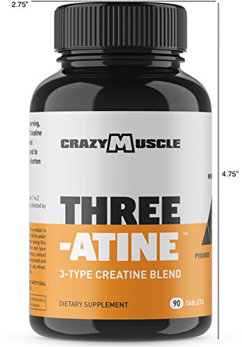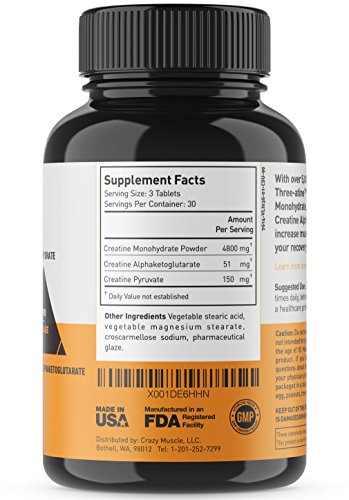 -. Title : Creatine Pills with over 5g of Monohydrate, Pyruvate + AKG by Crazy Muscle - Optimum Strength - Only 3 Capsules per serving - 90 Tablets