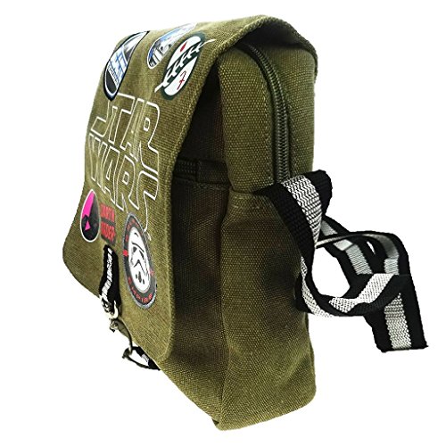 Studio : Trade Mark Collections Limited Publisher : Trade Mark Collections Limited Binding : Luggage Product Description A funky green canvas courier bag featuring star wars themed patches, that is suitable for children and adults alike. An adjustable strap allows the bag to be worn over the shoulder or across the body. It is made from canvas which is both stylish and durable. It is a good size for smaller belongings and has front pocket for those quickly needed items or small bits. Age 3 . Not suitable for young children due to choking strangulation hazards. This item is not a toy and is intended for functional use only. Approx Size: 3.5 litres Dimensions: 25x21x7cm 0