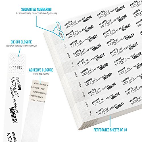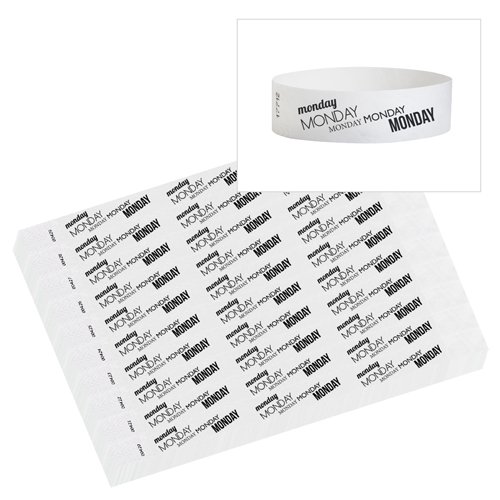 -. Title : Monday White - Wristco 3/4" Tyvek Wristbands - 500 Ct.