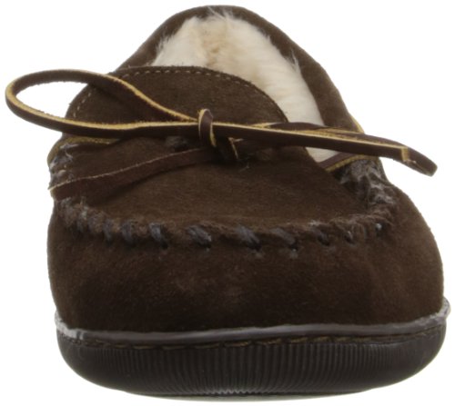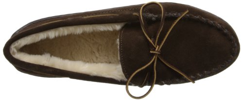 -. Feature : Indoor/outdoor slipper in classic moccasin silhouette featuring around-the-collar lacing and soft pile fleece lining / Whipstitched toe