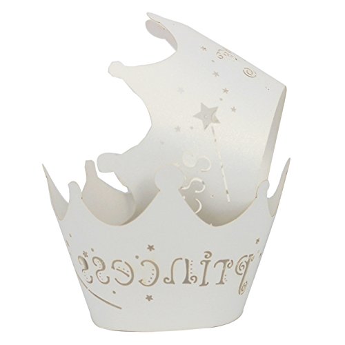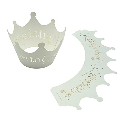 KEIVA Artistic Bake Cake Cups 100 Princess Crown Vine Lace Laser Cut Cupcake Wrapper Liner Baking Cup Muffin Case Trays for Wedding Birthday Party Decoration (White)